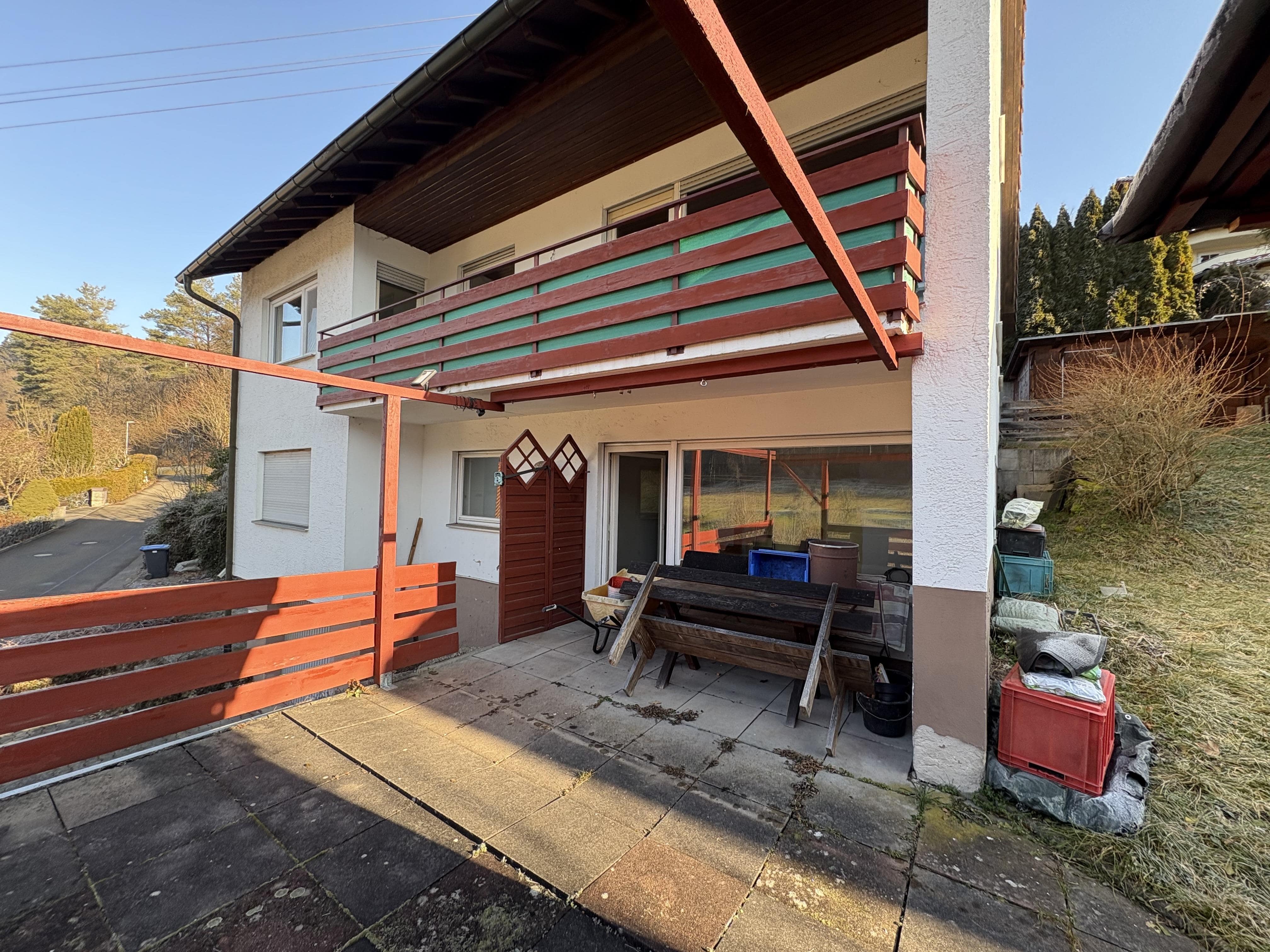 Zum Verkauf steht ein massiv gebautes Zweifamilienhaus aus dem Jahr 1967 mit zwei Garagen. Die Immobilie befindet sich in renovierungsbedürftigem Zustand und bietet vielfältige Nutzungsmöglichkeiten – ideal für Handwerker, Mehrgenerationenwohnen, Wohnen und Arbeiten unter einem Dach oder als Kapitalanlage. Im Untergeschoss befindet sich eine ca. 67 m² große Eigentumswohnung mit 2 Zimmern, Küche und Bad. Ein angrenzender Kellerraum ist direkt zugeordnet. Die Wohnung verfügt über eine Terrasse, die im Zuge des Garagen- und Terrassenanbaus im Jahr 2005 realisiert wurde. Das Erdgeschoss bietet eine Wohnfläche von ca. 105 m² mit zwei Zimmern, einem großzügigen Wohnzimmer mit Zugang zum Balkon und schönem Ausblick, einer geräumigen Küche sowie einem Badezimmer mit Fenster und separatem WC. Die Fenster wurden 2020 erneuert und sind als 3-fach verglaste Kunststofffenster ausgeführt. Im Dachgeschoss ist bereits ein Zimmer ausgebaut; zusätzlich besteht weiteres Ausbaupotenzial auf der Bühnenfläche, wodurch zusätzlicher Wohnraum geschaffen werden kann. Trotz des renovierungsbedürftigen Zustands überzeugt die Immobilie durch ihre solide Bausubstanz, die flexible Raumaufteilung und das vorhandene Entwicklungspotenzial.