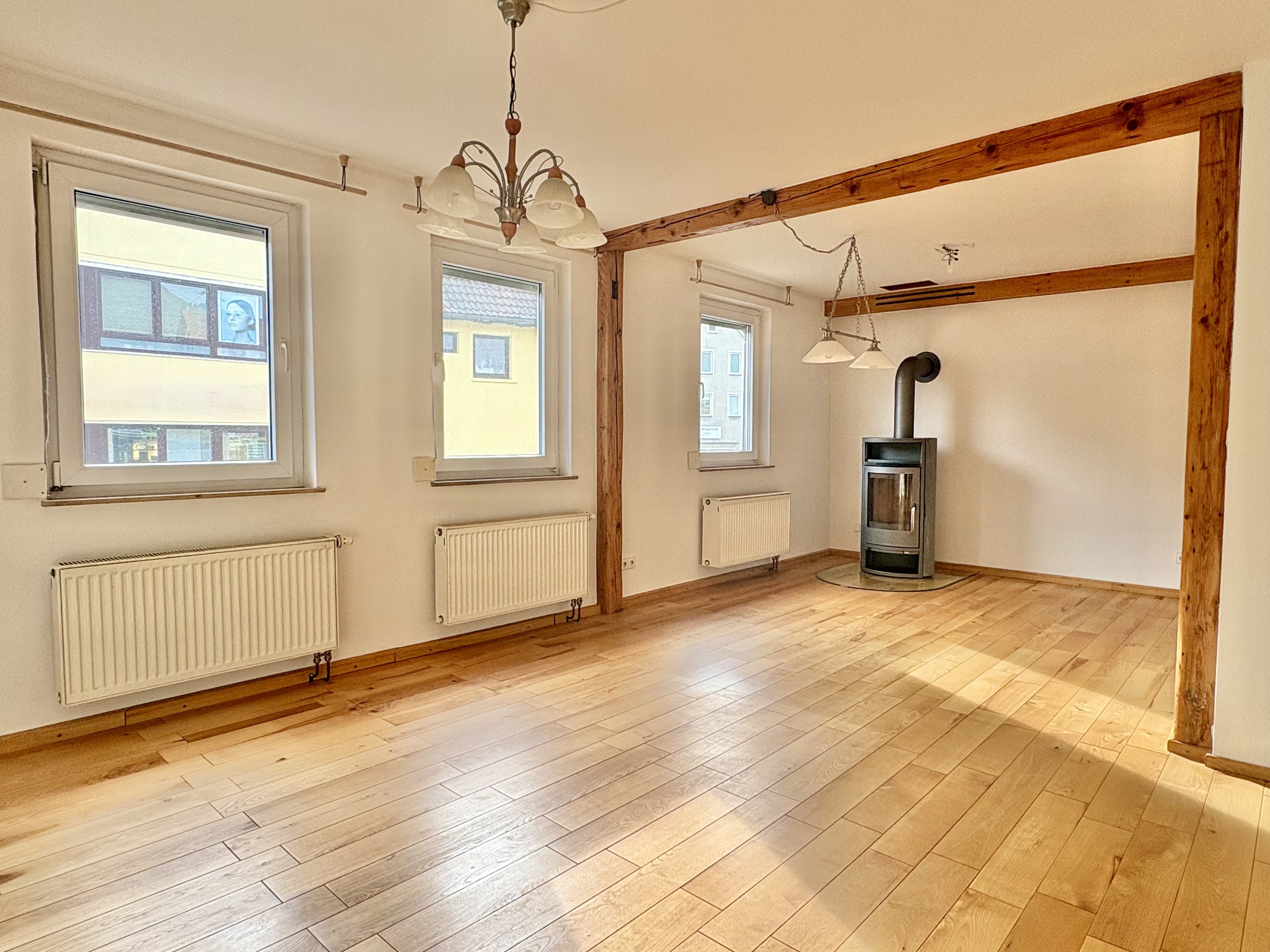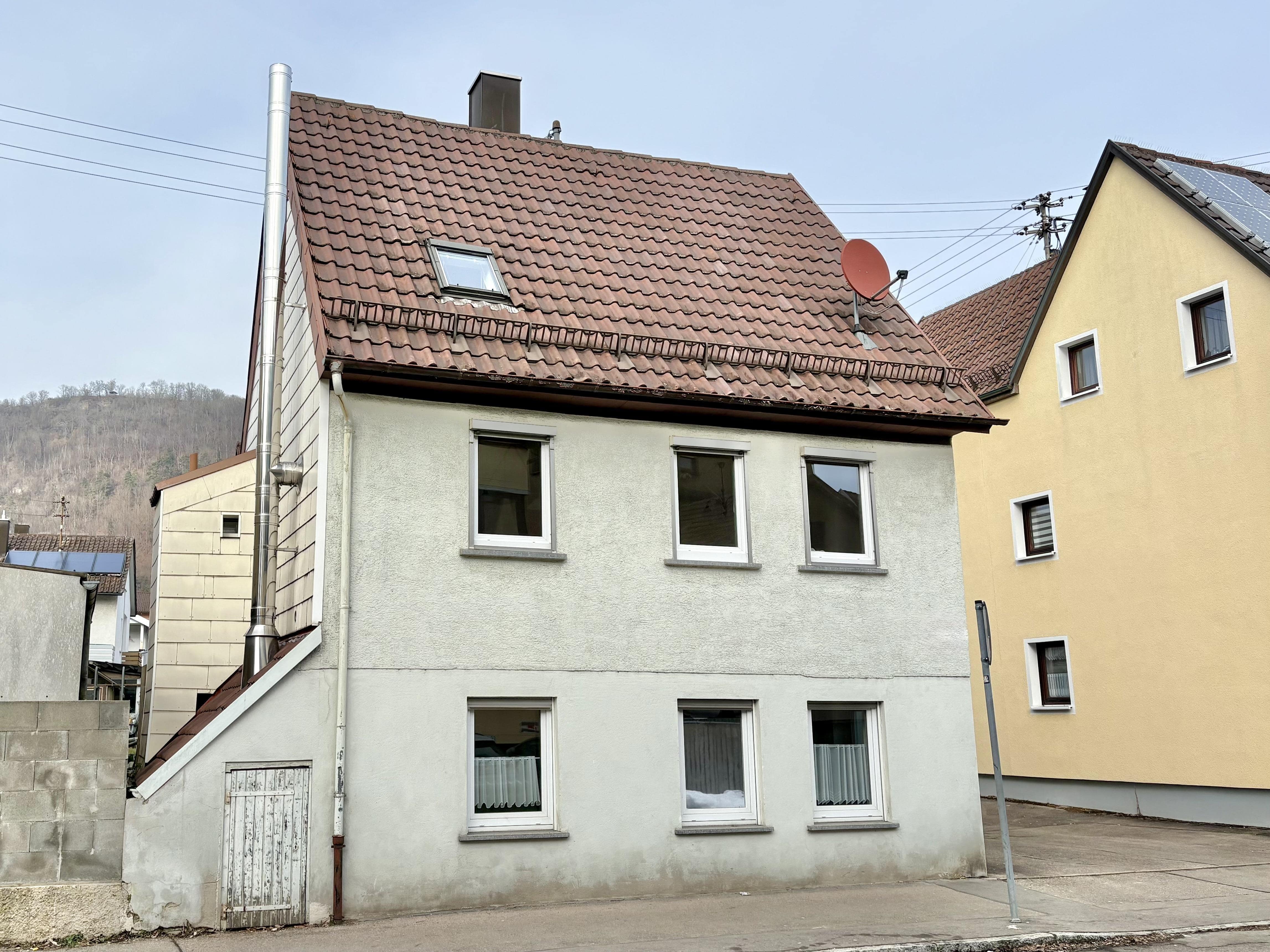 Dieses kleine Einfamilienhaus stammt vermutlich aus der Zeit um 1825 und bietet rund 99 m² Wohnfläche, verteilt auf Erdgeschoss, Obergeschoss und Dachgeschoss. Das Haus wirkt überschaubar, gepflegt und hat seinen ganz eigenen Charakter. Der Mittelpunkt des Hauses ist das großzügige Wohn und Esszimmer im Obergeschoss. Helle Räume, sichtbare Holzelemente und der Holzofen sorgen hier für eine angenehme Atmosphäre. Ein Ort, an dem man sich gerne aufhält, ob im Alltag oder abends bei einem Feuer im Ofen. Im Erdgeschoss befinden sich der Eingangsbereich, ein Zimmer sowie ein weiteres kleines Zimmer, das direkt anschließt. Zusätzlich ist hier ein Badezimmer untergebracht. Das Dachgeschoss bietet zwei weitere Zimmer, die sich gut als Schlaf, Arbeits oder Gästezimmer nutzen lassen. Die Küche ist funktional geschnitten und fügt sich stimmig ins Gesamtbild ein. Ein separates WC ist ebenfalls vorhanden. Das Haus ist teilunterkellert. Der Gewölbekeller bietet Stauraum und unterstreicht den ursprünglichen Charakter des Gebäudes. Ein Stellplatz gehört zur Immobilie und ist im Kaufpreis enthalten. Insgesamt ein ehrliches Haus mit klarer Aufteilung, warmen Materialien und einer angenehmen Wohnatmosphäre. Ideal für alle, die etwas Besonderes suchen und den Fokus auf das Wohnen legen.