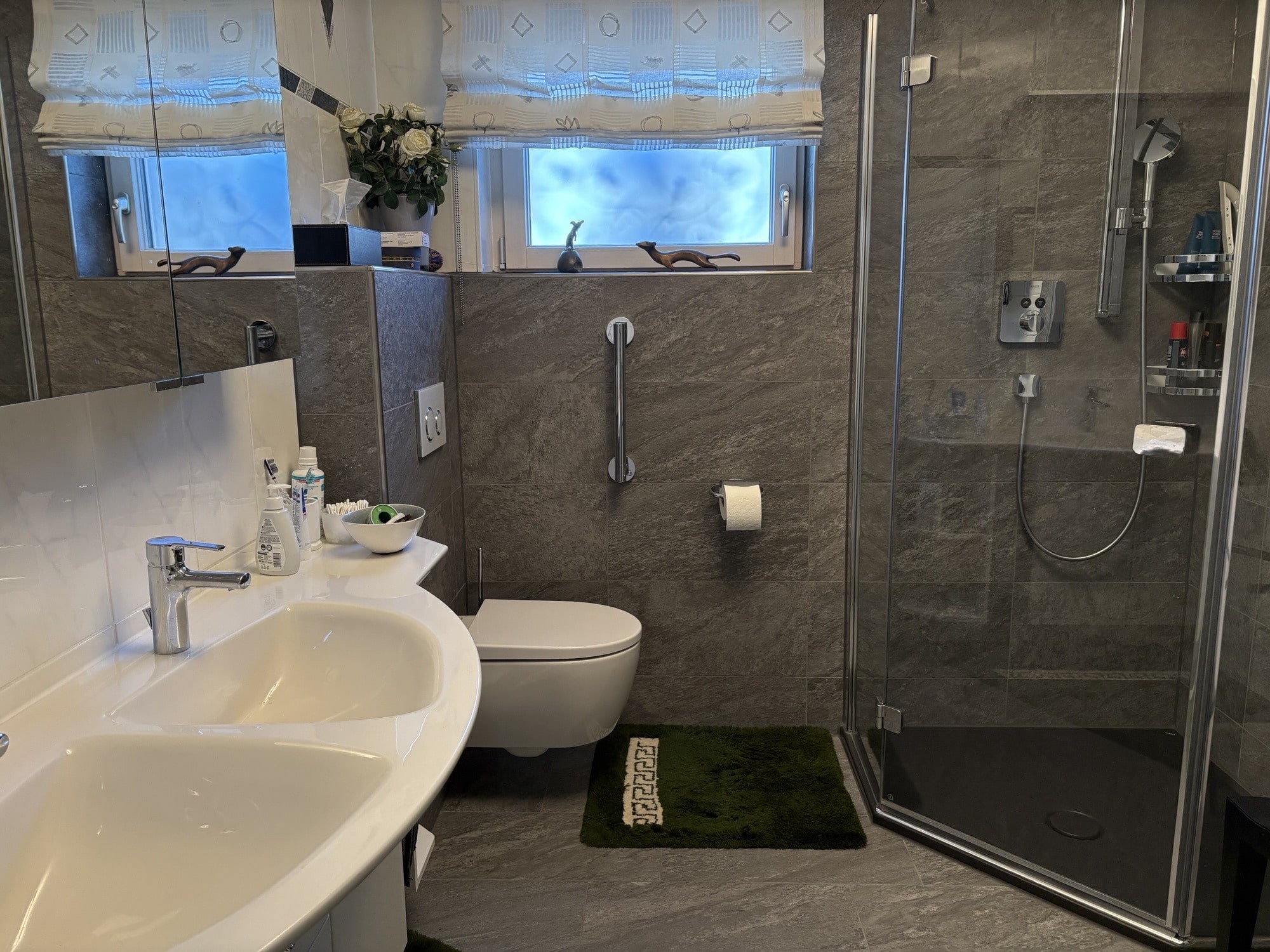 Ein Angebot, das Ihnen sehr gefallen wird! Dieses in massiver Bauweise erstellte und voll unterkellerte Zweifamilienhaus präsentiert sich in einem sehr guten Allgemeinzustand. Die hellen Zimmer und der durchdachte, moderne Grundriss werden Sie überzeugen! Im EG befindet sich eine 4,5 Zimmer-Wohnung mit einer schönen Terrasse. Im DG finden Sie eine weitere Wohnung mit 3 Zimmern und 2 Balkonen vor. Geheizt wird mit einer komfortablen Gaszentralheizung aus dem Jahr 2016 und ergänzend mit jeweils einem gasbetriebenem Kaminofen im EG sowie im DG. Die Fenster und die Hauseingangstüre wurden bereits 2011 ausgetauscht! Ein besonderes Highlight ist das im Jahr 2024 hochwertig sanierte Tageslichtbad im EG! Eine moderne PV-Anlage mit Speicher wurde im Jahr 2022 installiert. Dadurch kann man die Stromkosten erheblich reduzieren! Abgerundet wird dieses sehr interessante und seltene Angebot mit einer großzügigen Doppelgarage ( elektrisches Tor bereits ausgetauscht ) und einer Wallbox zum Laden Ihres E-Wagens. Das Haus wird aktuell eigenbewohnt.