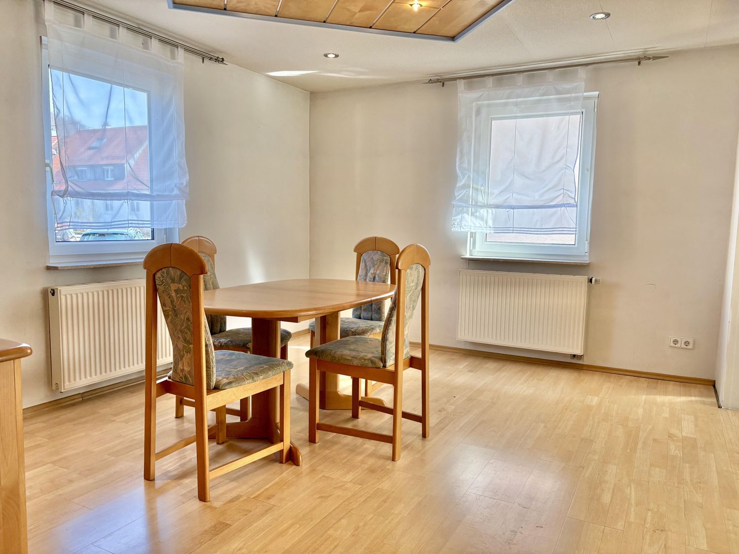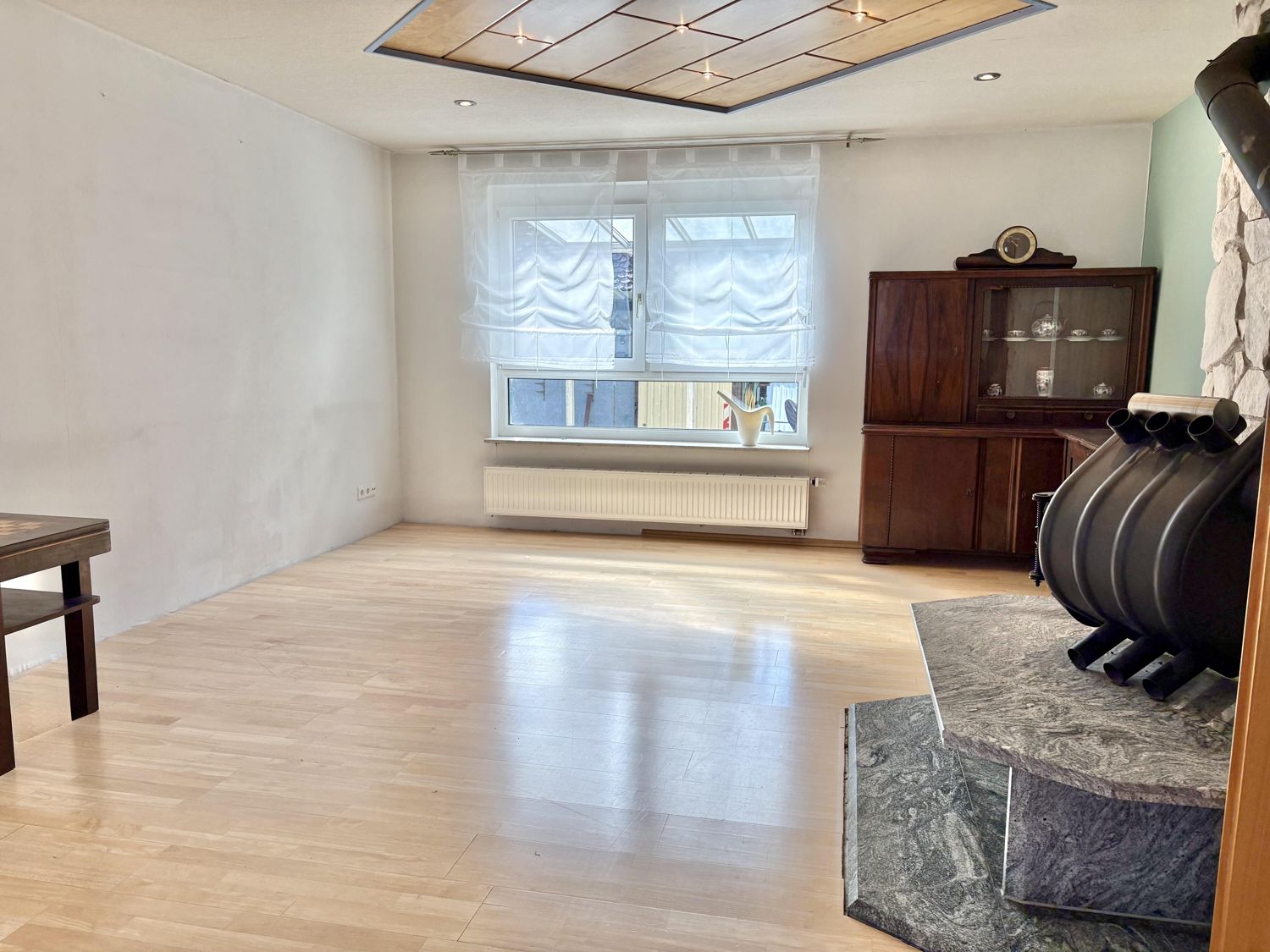 Heizung: Gas-Zentralheizung. Fenster: Kunstoffisolierglas. Wände: Putz, Fliesen, Holzverkleidung Böden: Laminat, OSB-Platten, Fliesen. 1 Tageslichtbad, Gäste-WC, sep. WC, Balkon, Keller, überdachte Terrasse, 2 Autostellplätze.