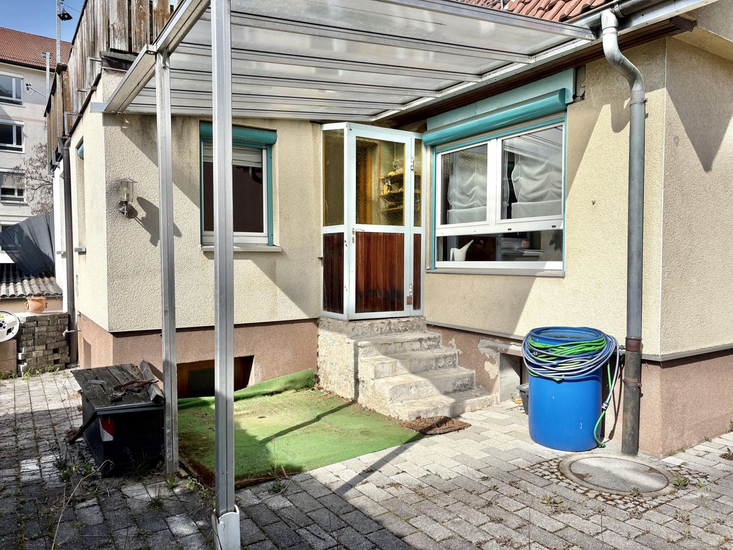 Sie suchen nach einem neuen Zuhause für sich und Ihre Familie? Dann haben wir hier das passende Angebot für Sie! Diese Doppelhaushälfte aus dem Jahr 1921 bietet mit ca. 98 m² Wohnfläche, verteilt auf 3,5 Zimmer, einen idealen Rückzugsort für Sie und Ihre kleine Familie. Das Haus wurde 1957 durch einen Anbau im Küchenbereich erweitert. Im Jahr 1997 folgten umfangreiche Modernisierungen an Elektrik, Wasserleitungen, Heizung, Fenstern und der Innendämmung. Dadurch präsentiert sich die Immobilie heute in einem gepflegten Gesamtzustand mit einer gut durchdachten Raumaufteilung. Im Erdgeschoss befinden sich neben einem Gäste-WC der helle, großzügige Wohn- und Essbereich sowie die erweiterte Küche mit direktem Zugang in den kleinen, aber gemütlichen Garten. Die überdachte Terrasse lädt zum Verweilen im Freien ein - ob für entspannte Abende oder das Sonntagsfrühstück mit Ihren Lieben. Das Dachgeschoss bietet zwei Schlafzimmer sowie ein Tageslichtbad mit Badewanne und Dusche. Vom Bad aus gelangen Sie auf den sonnigen Balkon. Ein separates WC ergänzt diese Etage. Die Bühne ist bereits ausgebaut und schafft zusätzliche Nutzfläche, die sich flexibel verwenden lässt. Abgerundet wird das Angebot durch zwei PKW-Stellplätze direkt am Haus.