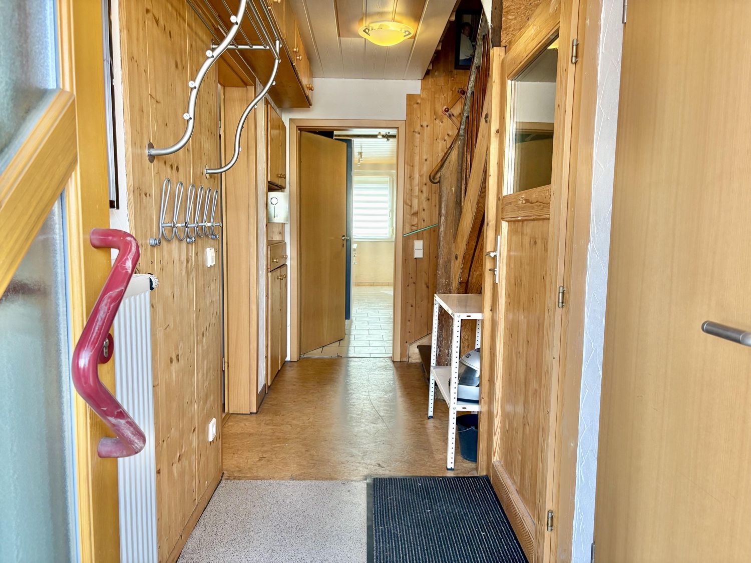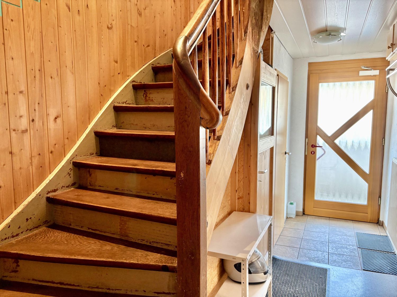 Heizung: Gas-Zentralheizung. Fenster: Kunstoffisolierglas. Wände: Putz, Fliesen, Holzverkleidung Böden: Laminat, OSB-Platten, Fliesen. 1 Tageslichtbad, Gäste-WC, sep. WC, Balkon, Keller, überdachte Terrasse, 2 Autostellplätze.